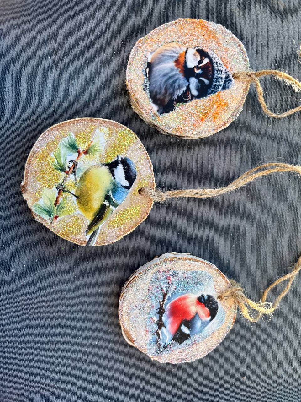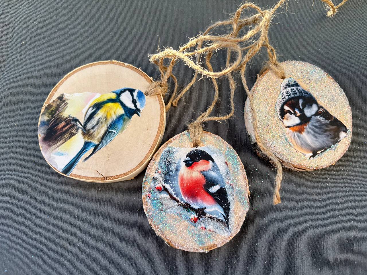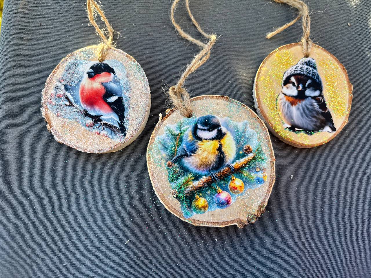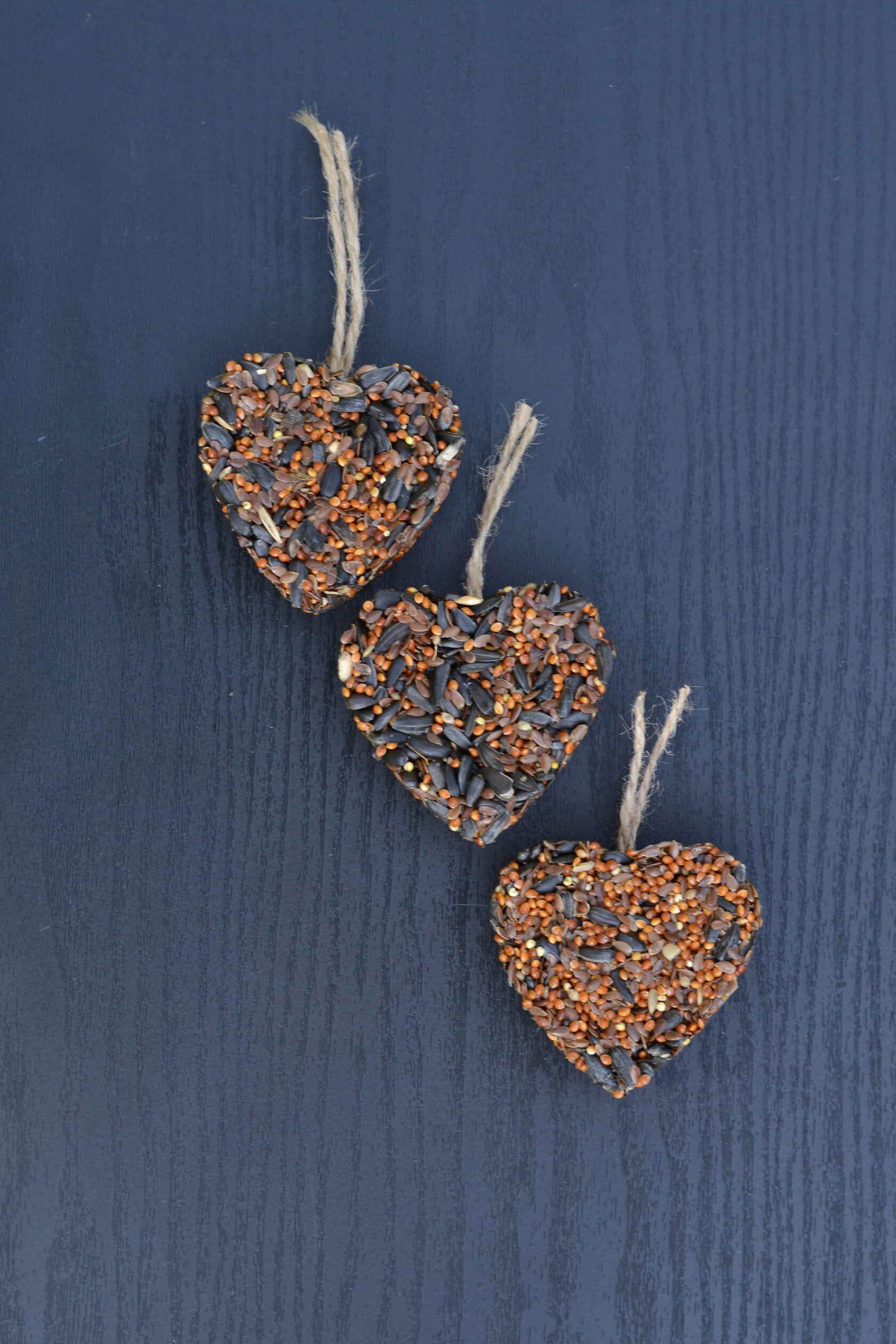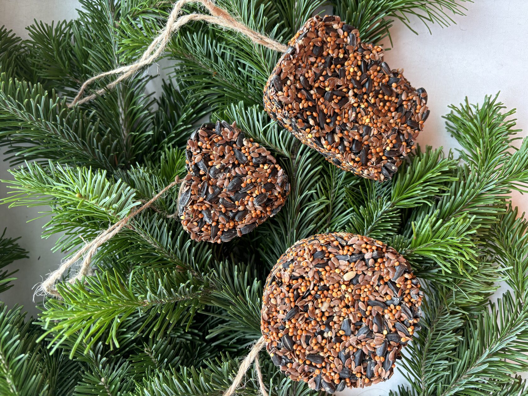 Мы производим зерновое печенье разных форм и размеров, состоящих из семян : проса желтого и красного, льна и семян подсолнечника. Каждая кормушка оснащена джутовой нитью для крепления к ветке дерева.